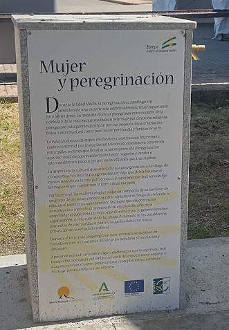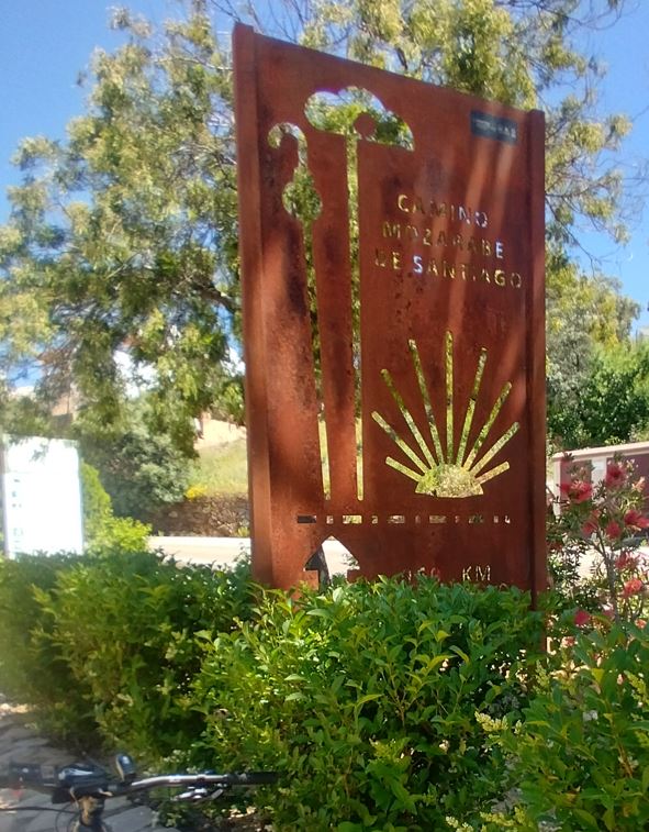 Salimos de Cerro Muriano en un paseo peatonal lateral a la carretera N-432A hasta rebasar las instalaciones de la Base Militar de Cerro Muriano, lugar donde también podemos sellar nuestra credencial.