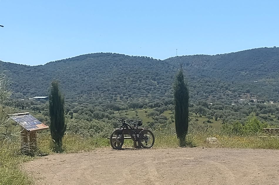 Tomamos la pista del Balneario de Santa Elisa, que dejamos a la derecha y continuamos por la carretera hasta un poco antes del cruce con la carretera A-3176 cuando tomamos un sendero a la derecha que comienza la última subida de la etapa. este sendero nos hará cruzar esta carretera otra vez y llegaremos a un punto de observación astronómica. Nos queda menos de un kilómetro pero en importante subida hasta Villaharta donde existe otro albergue digital de este proyecto.
